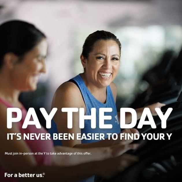 The day of the month is the amount you pay for your joining fee. Must join in-person at the Y to take advantage of this offer.
